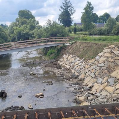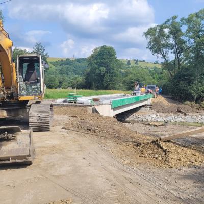 Ponadto, w ramach zadania trwają prace przy przebudowie gminnej infrastruktury drogowej. Kwota dofinansowania wszystkich zadań wynosi 6 750 606,81 zł, co stanowi 95% ostatecznej wartości inwestycji, w tym wartość przebudowy mostów: na potoku Smolniczek (1 506 750,25 zł) oraz na rzece Osława (1 634 141,79 zł).
