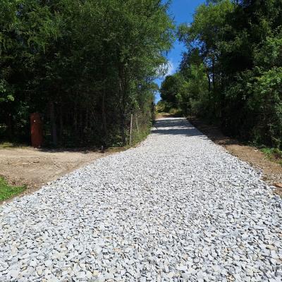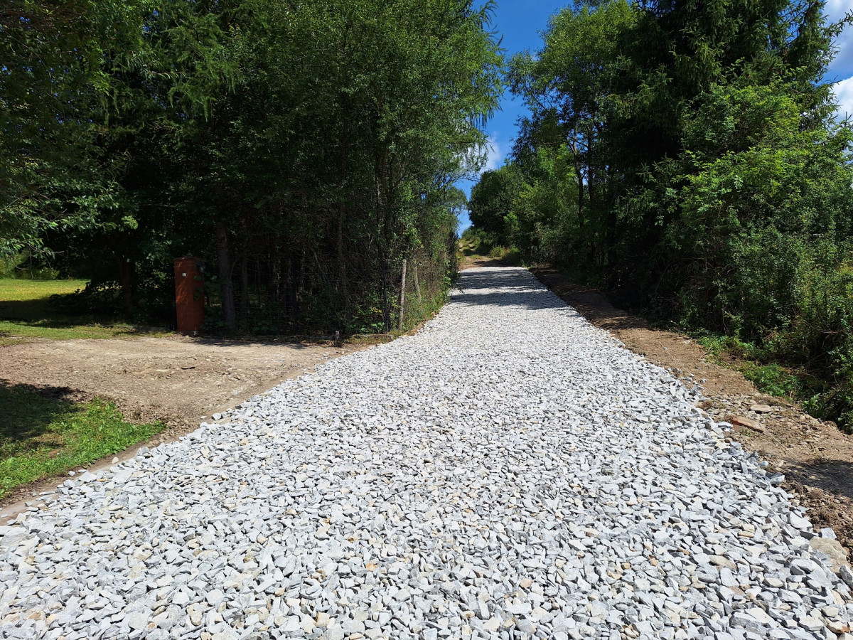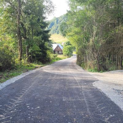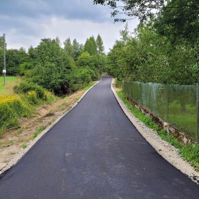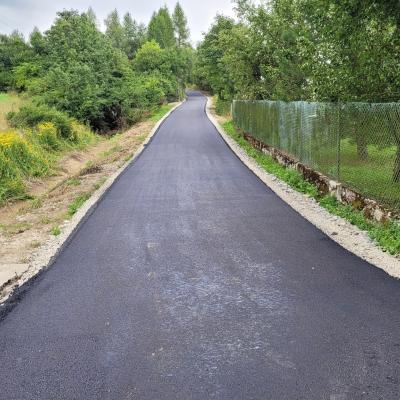 Zakres robót obejmował odtworzenie trasy i punktów wysokościowych, wycinkę drzew i krzewów, roboty przygotowawcze i rozbiórkę starych elementów drogi, wykonanie wykopów w gruntach nieskalistych, wykonanie odwodnienia i podbudowy z kruszywa naturalnego i łamanego, oczyszczenie i skropienie warstw konstrukcyjnych, wykonanie nawierzchni z betonu asfaltowego oraz odmulenie rowów wraz z przepustami pod zjazd.