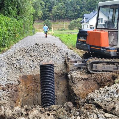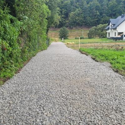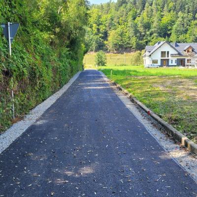 W zakresie prac odtworzono trasę i punkty wysokościowe, wykonano roboty przygotowawcze, w tym rozbiórkę starych elementów drogi, wykonano wykopy w gruntach nieskalistych, odwodnienie, profilowanie i zagęszczeni podłoża, wykonano podbudowę z kruszywa, oczyszczenie i skropienie warstwy konstrukcyjnych oraz wykonano nawierzchnię z betonu asfaltowego wraz z poboczami.