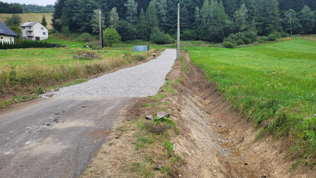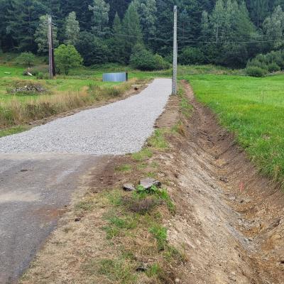 Zakres prac obejmował odtworzenie trasy i punktów wysokościowych, roboty przygotowawcze i rozbiórkę elementów drogi, wykonanie wykopów w gruntach nieskalistych, profilowanie i zagęszczeni podłoża, wykonanie podbudowy, oczyszczenie i skropienie warstw konstrukcyjnych, wykonanie nawierzchnia z betonu asfaltowego oraz pobocza, w tym odmulenie rowów pod zjazdami.