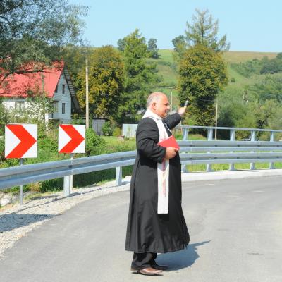 Poświęcenia mostów i drogi dokonał Proboszcz Parafii Rzymskokatolickiej pw. św. Apostołów Piotra i Pawła w Nowym ŁUPKOWIE Ks. Piotr BIELÓWKA.