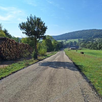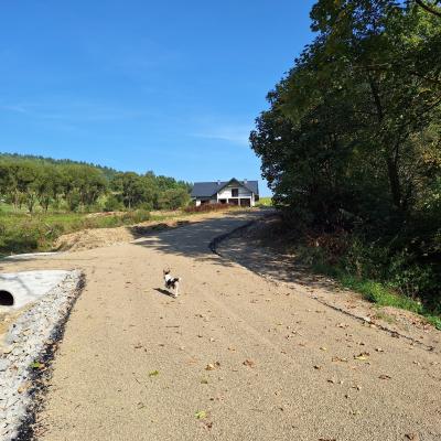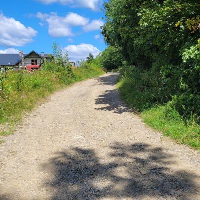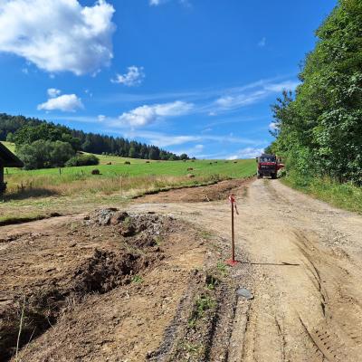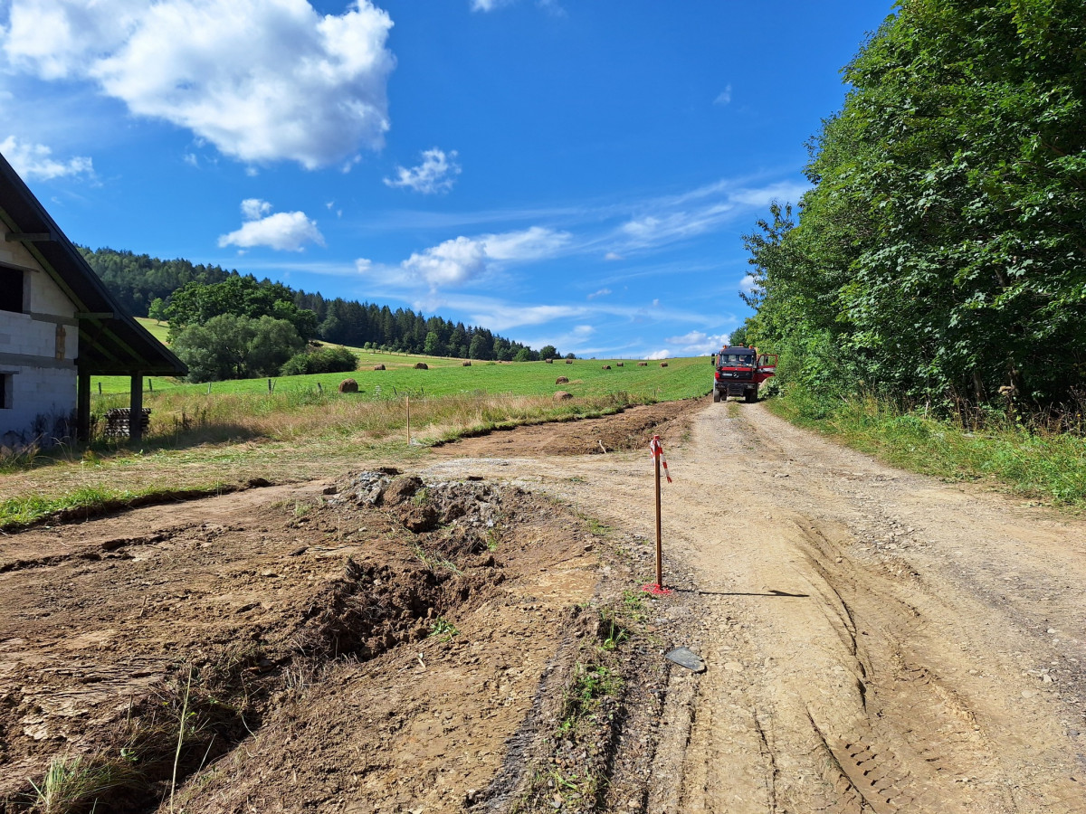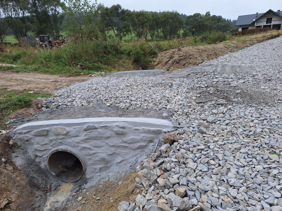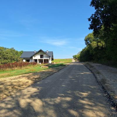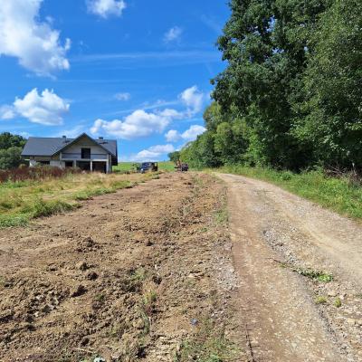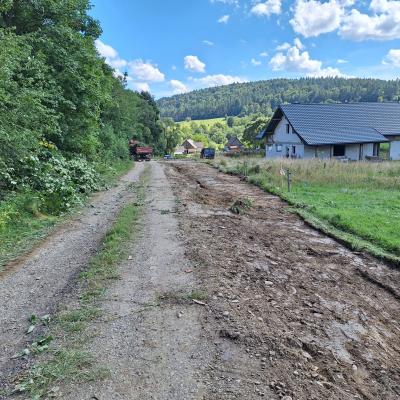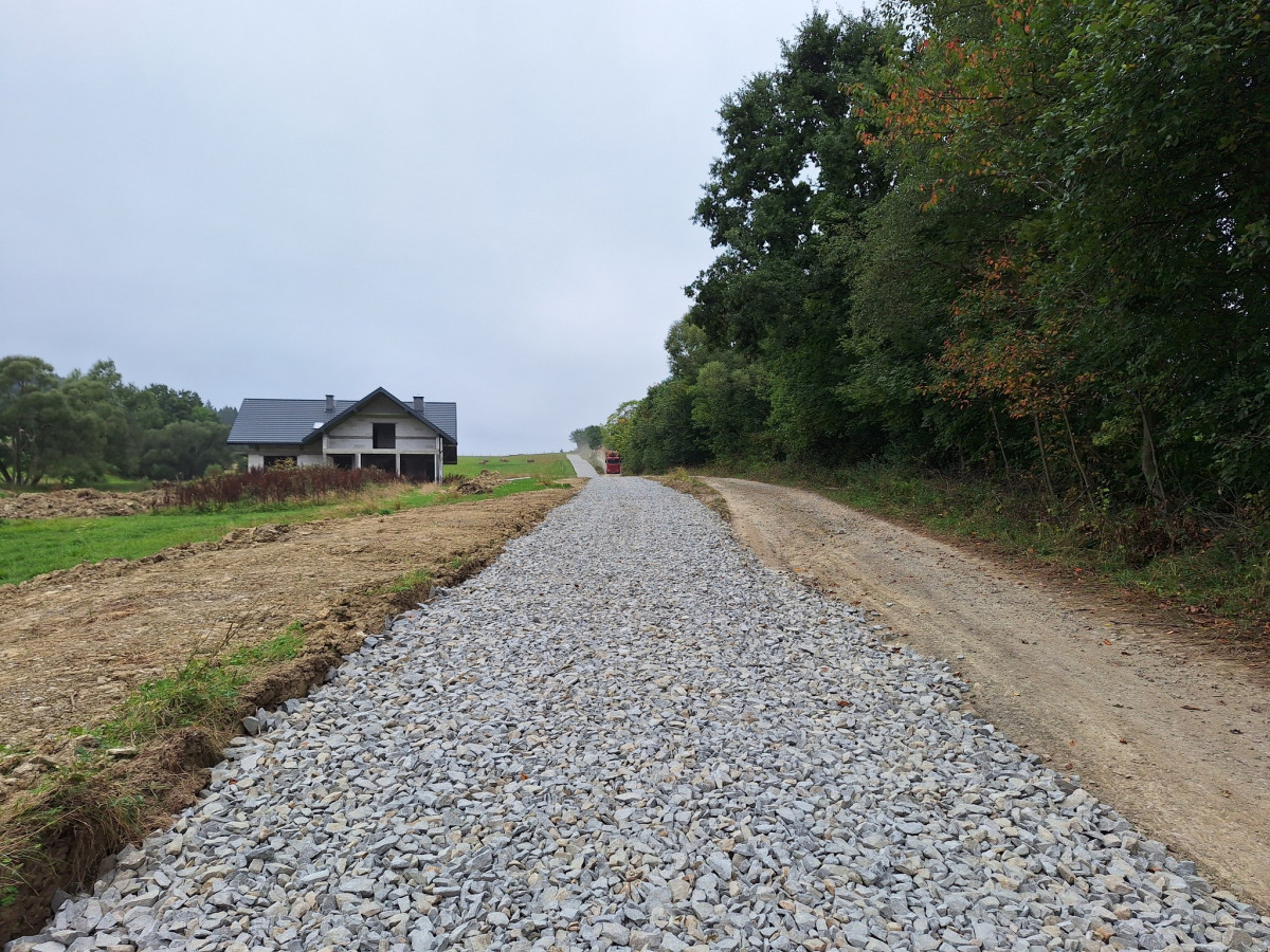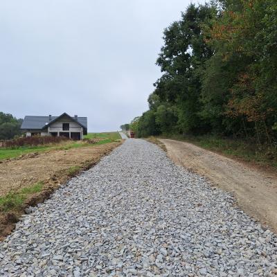 W ramach prac wykonano prace przygotowawcze, w tym roboty pomiarowe przy liniowych robotach ziemnych, wykonano odwodnienie poprzez montaż wodospustów, profilowanie i zagęszczenie, wyrównano istniejącą podbudowę tłuczniem sortowanym, wykonano warstwę dolną z kruszywa naturalnego oraz łamanego i roboty wykończeniowe.
