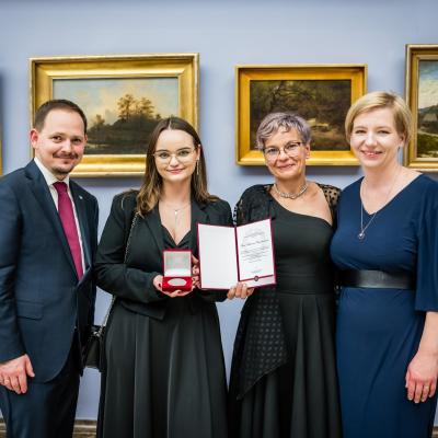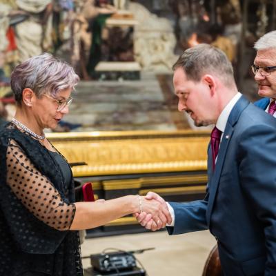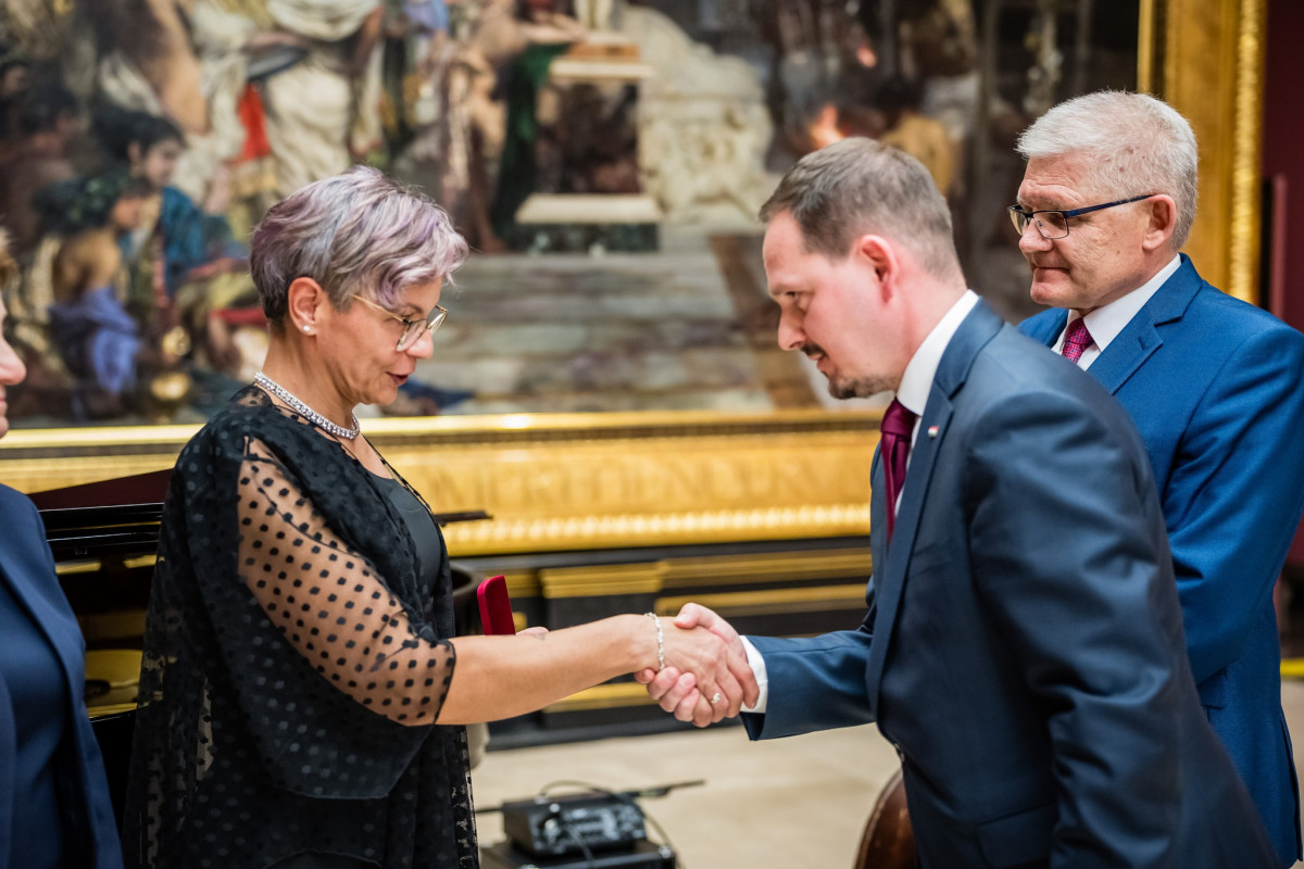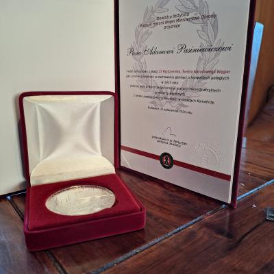 Konsul Generalny Węgier w Krakowie dr Tibor GERENCSÉR oraz Podpułkownik dr Attila BÁN wręczyli na ręce małżonki odznaczonego - Anny PASINIEWICZ medal pamiątkowy z okazji 23 października - Święta Narodowego Węgier, jako uznanie działalności Adama PASINIEWICZA w zachowaniu pamięci o honwedach i poległych w 1915 roku podczas walk w BIESZCZADACH oraz pracach rekonstrukcyjnych cmentarzy wojennych z okresu pierwszej wojny światowej w okolicach KOMAŃCZY.