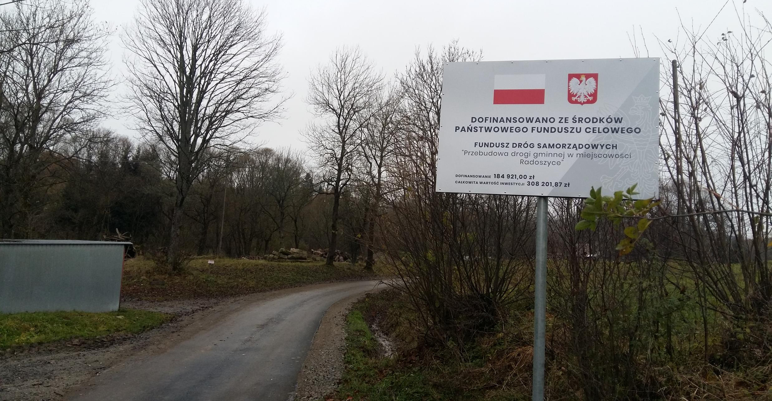 Projekt pn.: „Przebudowa drogi w miejscowości Radoszyce” finansowany z Funduszu Dróg Samorządowych.