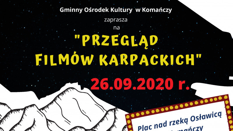 PRZECZYTAJ WIĘCEJ ...Serdecznie zapraszamy na "Przegląd filmów Karpackich" który odbędzie się 26.09.2020 r. na placu nad rzeką Osławicą w Komańczy.