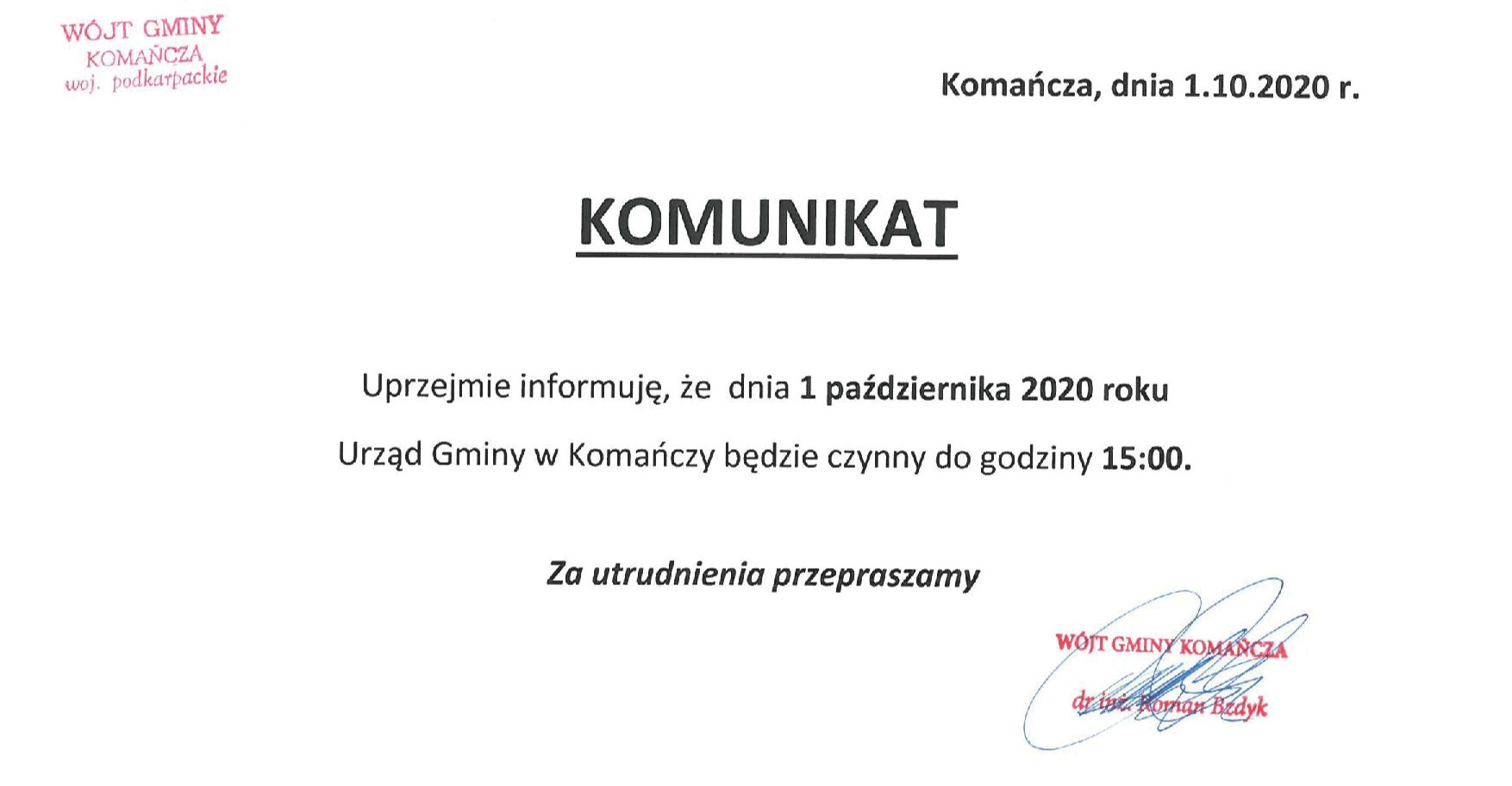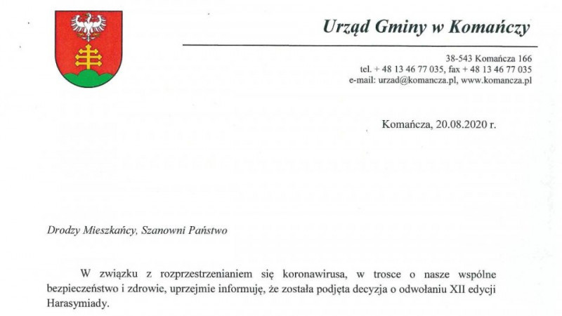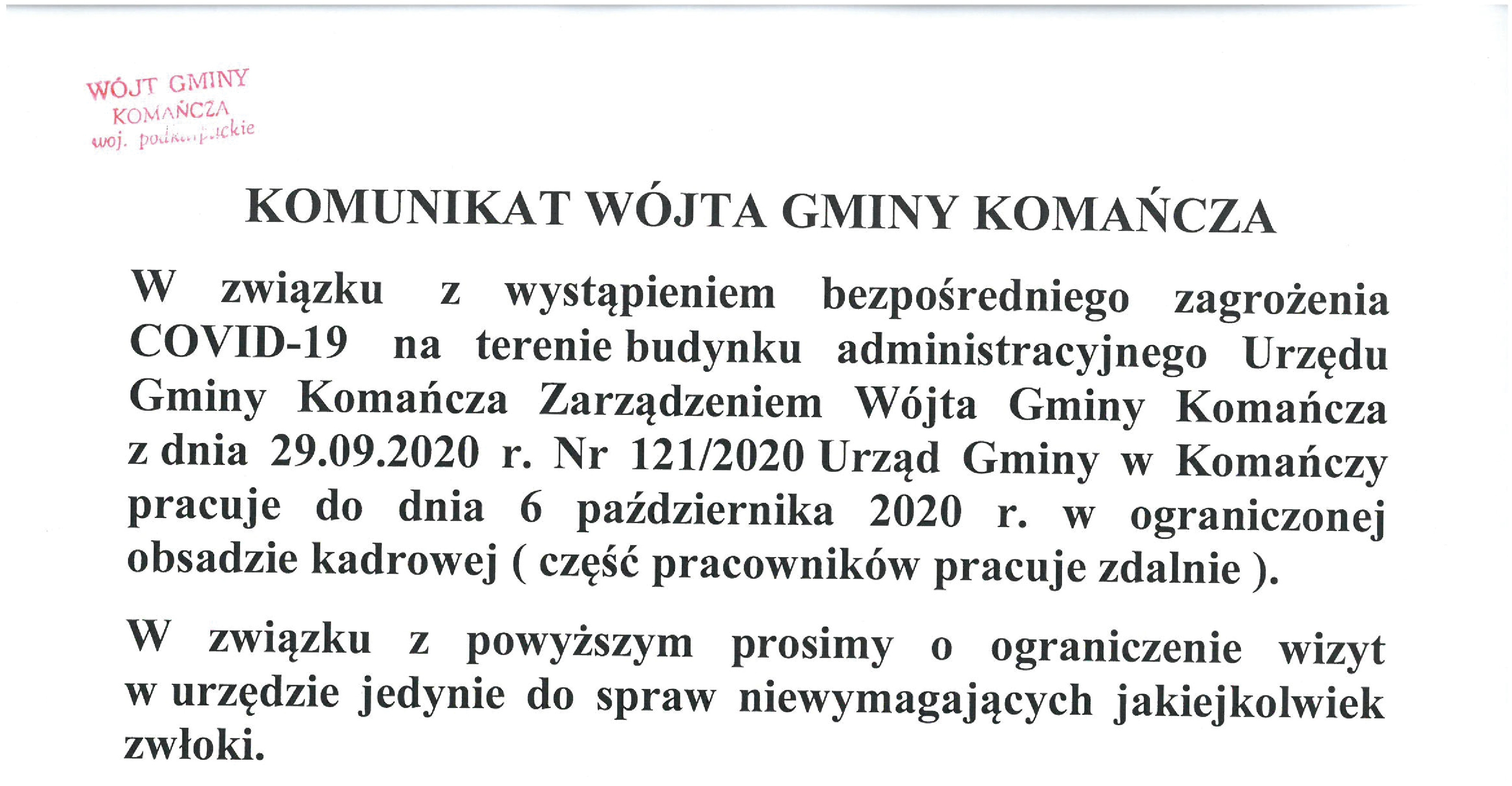 PRZECZYTAJ WIĘCEJ ...W związku z wystąpieniem bezpośredniego zagrożenia COVID-19 na terenie budynku administracyjnego Urzędu Gminy Komańcza Zarządzeniem Wójta Gminy Komańcza z dnia…